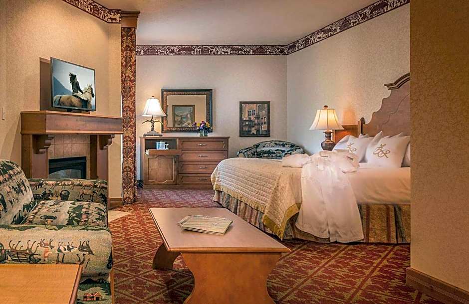 This suite's special feature is the fireplace. Providing free toiletries, this suite includes a private bathroom with a bath and a shower. The air-conditioned suite provides a flat-screen TV with cable channels, a tea and coffee maker, a seating area, a safe deposit box as well as mountain views.